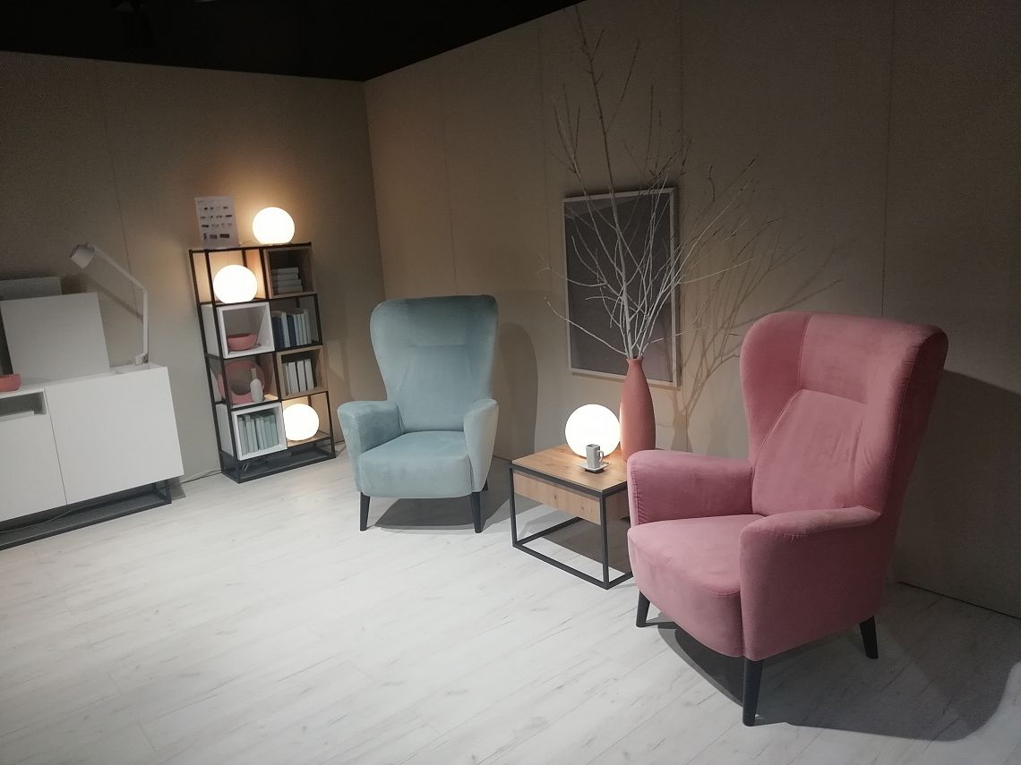 - Meble tapicerowane – odcienie zieleni, niebieskiego i … wciąż kolor musztardowy. Nadal popularny styl skandynawski