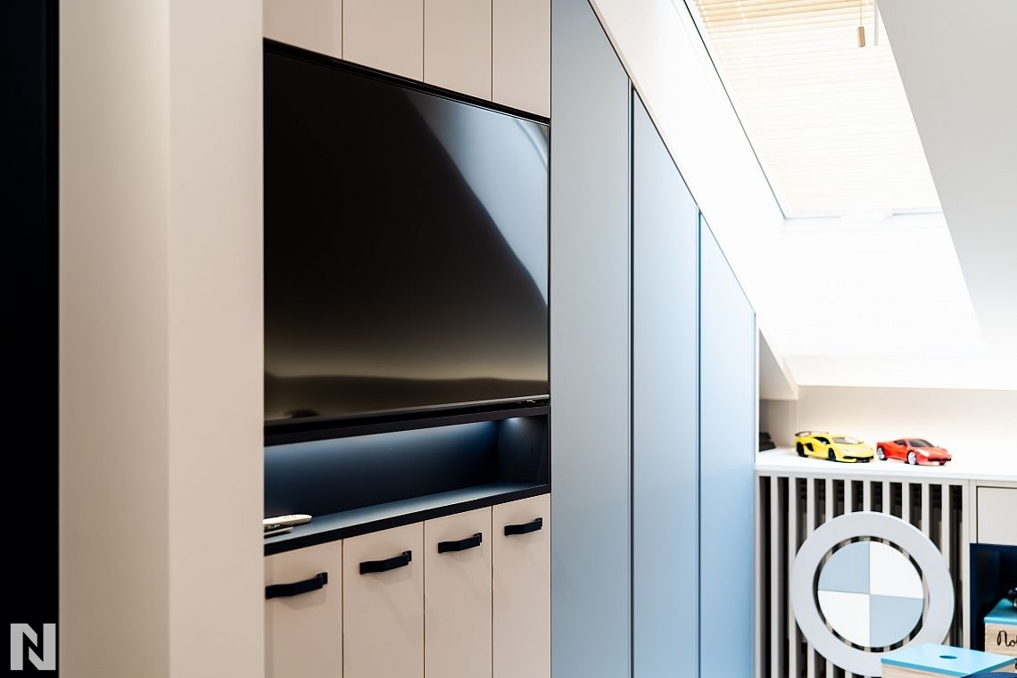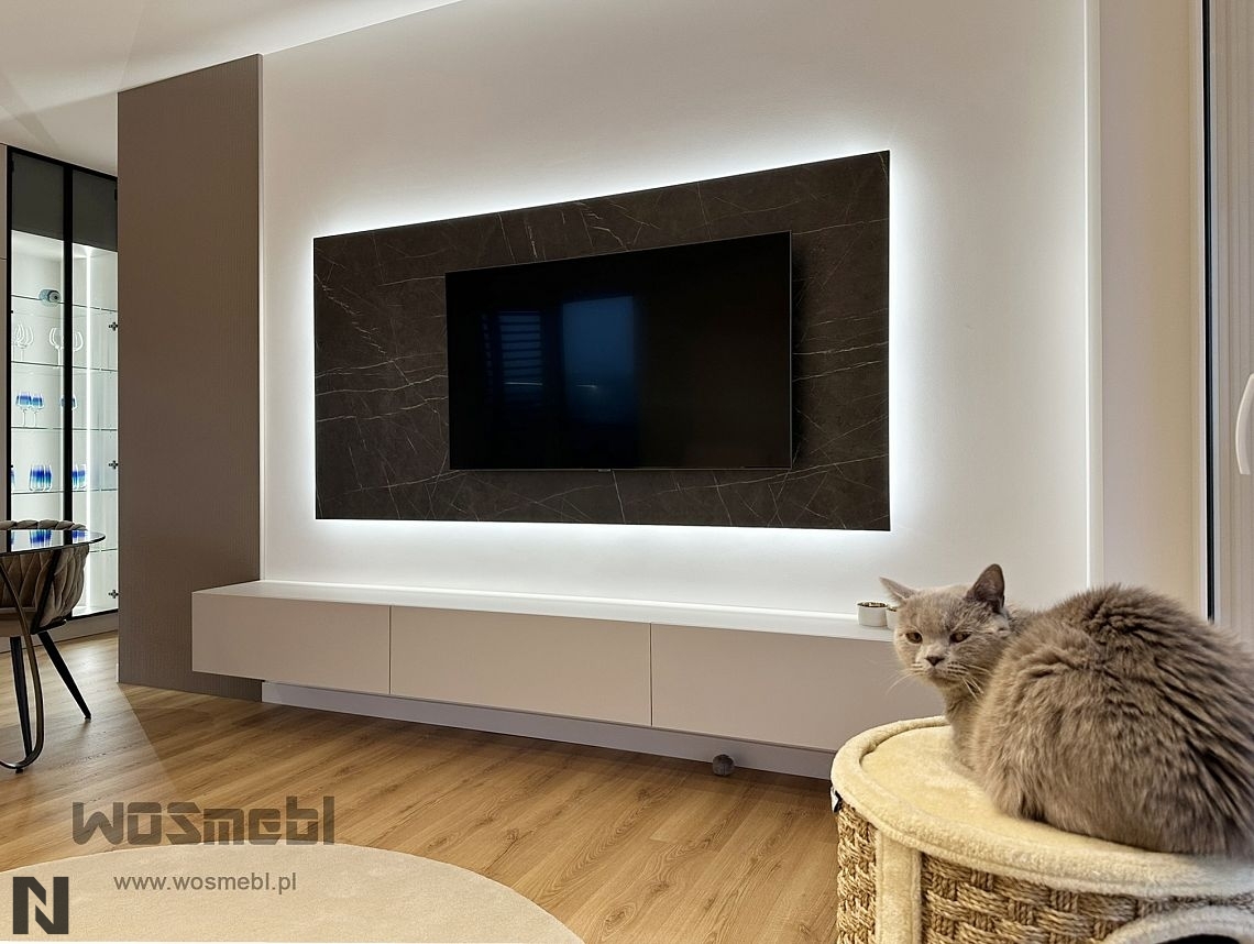 Jasnoszary Mat AFP 85468 - zabudowa RTV, realizacja Meble Adamkiewicz