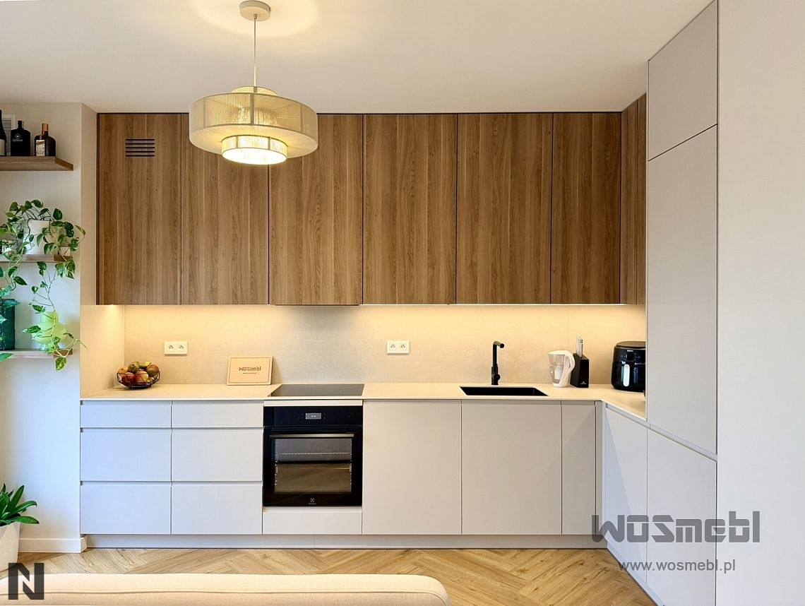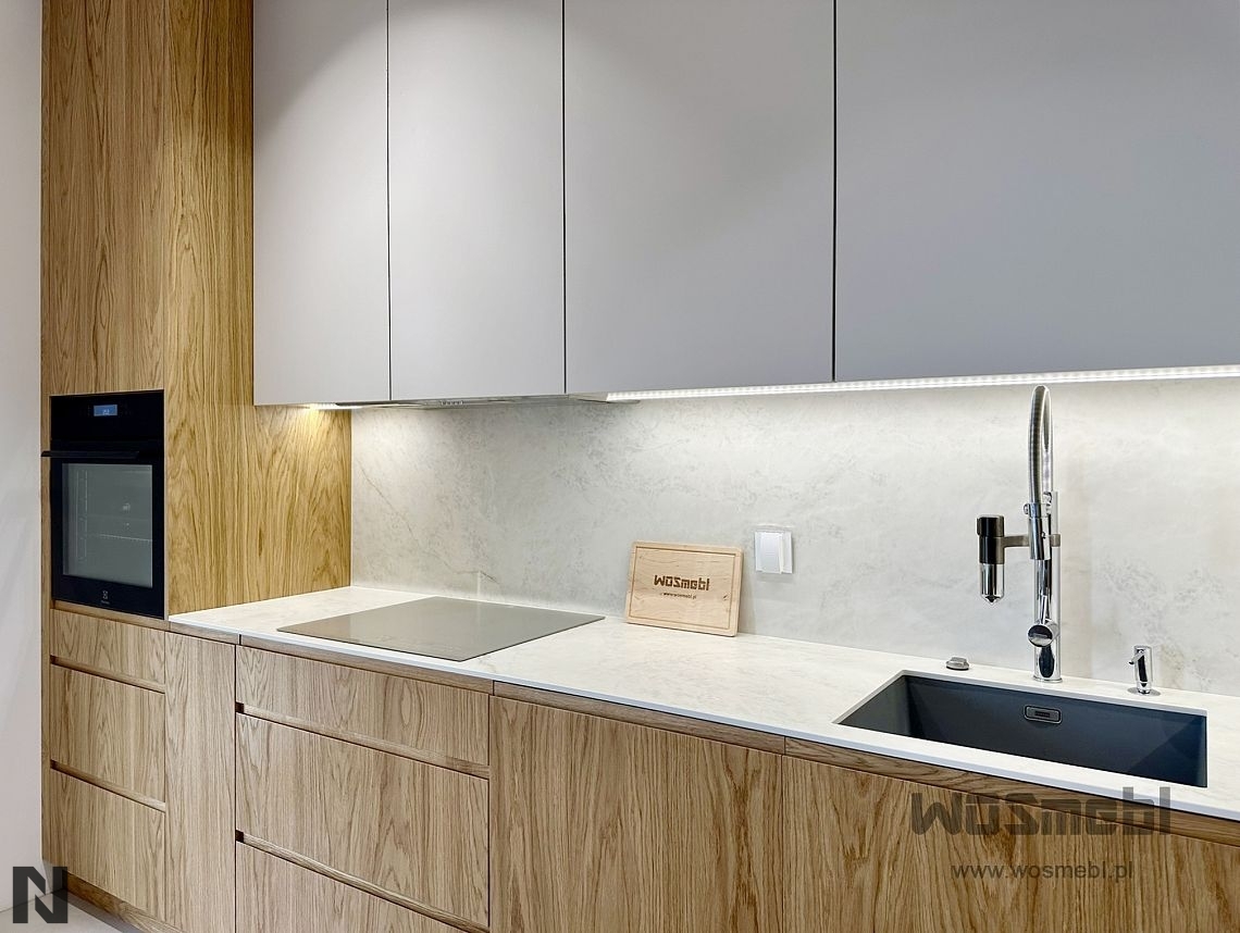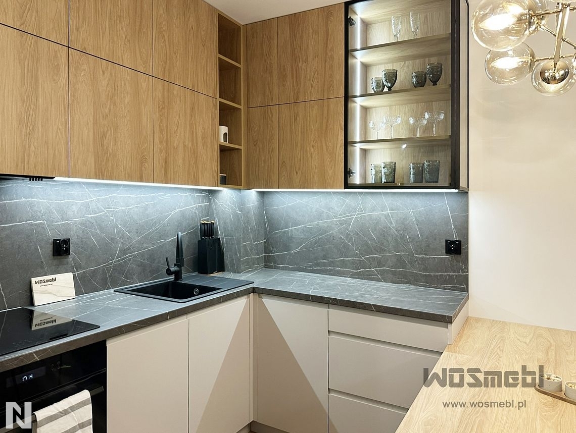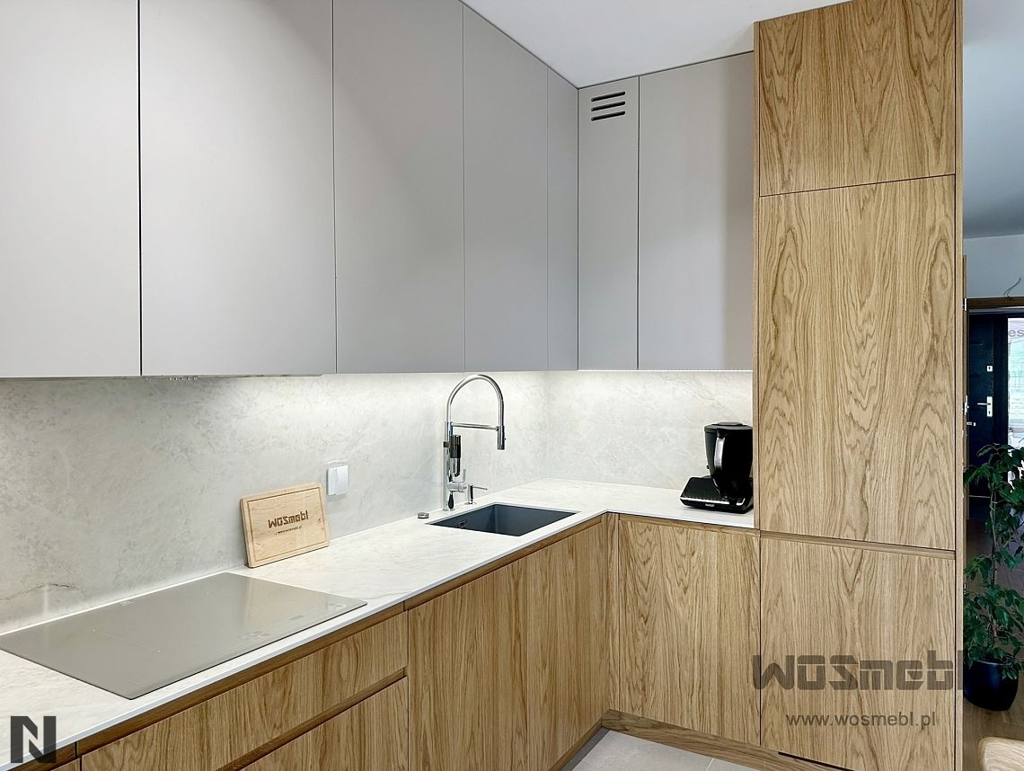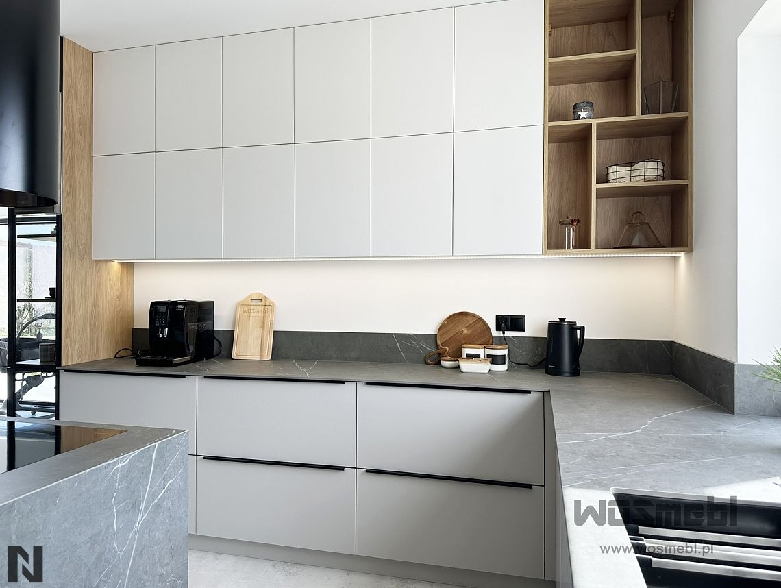 Matowe fronty z drewnianym blatem wizualizacja ALVOS meble na wymiar