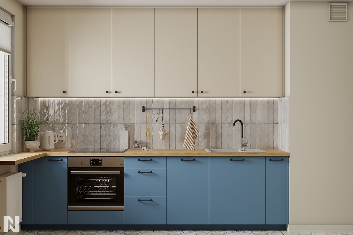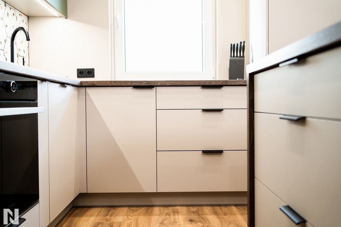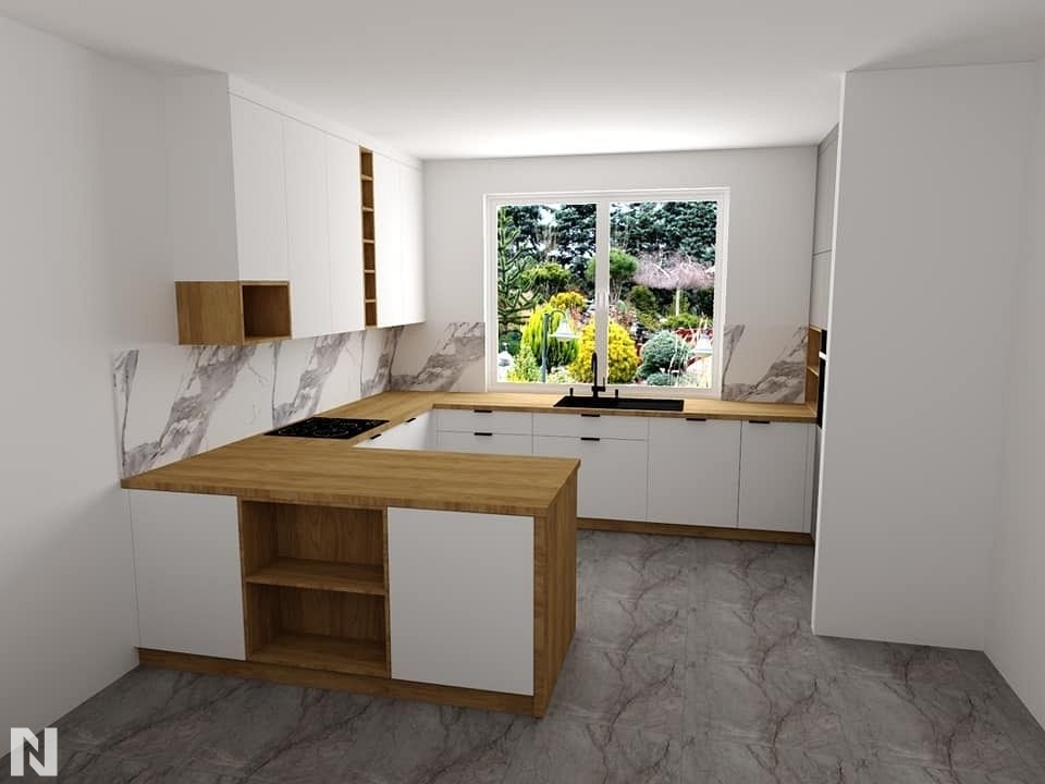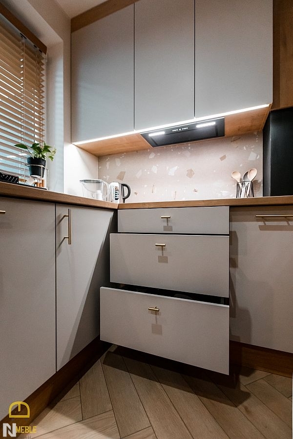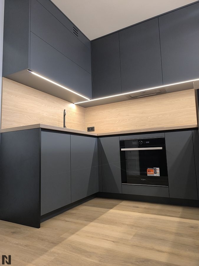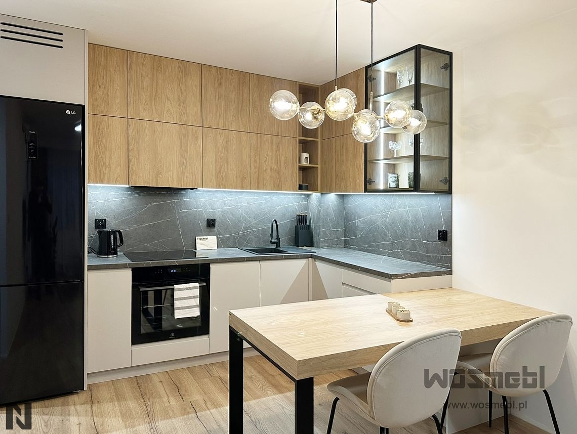 Matowe fronty z drewnianym blatem wizualizacja ALVOS meble na wymiar